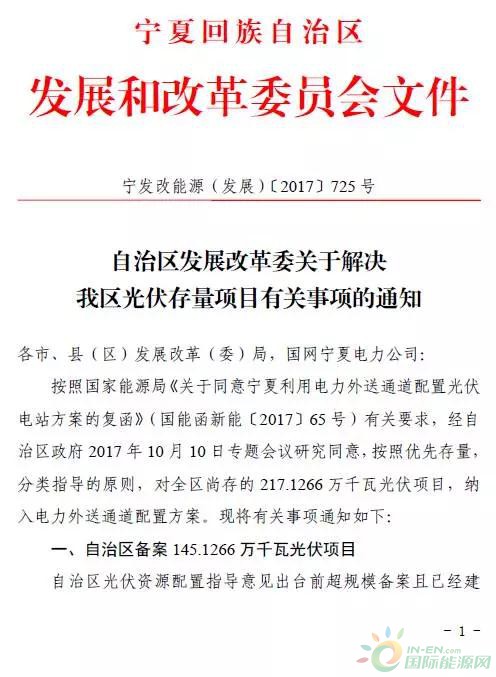 中國儲(chǔ)能網(wǎng)訊:由于過去幾年中光伏電站的管理模式調(diào)整以及地方管理模式粗放,導(dǎo)致部分省份出現(xiàn)了較為嚴(yán)重的建成(及在建)光伏電站沒有指標(biāo)。如安徽、山東、河南、寧夏、甘肅等地都出現(xiàn)了或多或少的已建成電站無法納入國家規(guī)模管理指標(biāo)中,導(dǎo)致電站建成后“空曬太陽”。據(jù)光伏們獲悉,寧夏回族自治區(qū)于2017年11月14日下發(fā)《關(guān)于解決我區(qū)光伏存量項(xiàng)目有關(guān)事項(xiàng)的通知》,“對(duì)全區(qū)尚存的217.1266萬千瓦光伏項(xiàng)目,納入電力外送通道配置方案?!毕嚓P(guān)電價(jià)則根據(jù)物價(jià)部門已批復(fù)的上網(wǎng)定價(jià)和國家發(fā)改委有關(guān)電價(jià)政策規(guī)定執(zhí)行——意味著已經(jīng)并網(wǎng)的電站將拿到并網(wǎng)節(jié)點(diǎn)時(shí)的電價(jià)、在建項(xiàng)目將執(zhí)行新的上網(wǎng)電價(jià)。