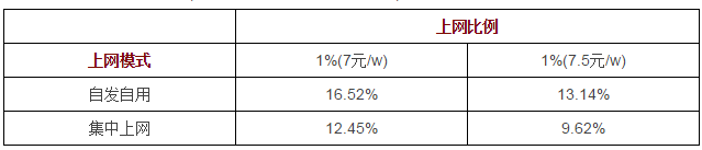 通過上表可知,在該容量下,只要自發(fā)自用比例超過18.5%,其資本金內(nèi)部收益率高于集中上網(wǎng)。