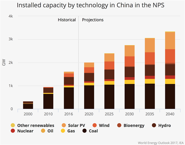 到2040年,預(yù)計中國將增加的發(fā)電量相當于整個美國電力系統(tǒng)的發(fā)電量。國際能源機構(gòu)預(yù)計,根據(jù)目前的政策,中國的煤炭消費量在未來幾年將達到高峰,到2040年將下降15%。中國的電動車投資也將占全球的40%以上。