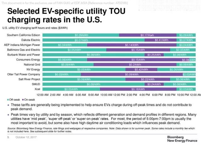 (美國(guó)部分電廠針對(duì)電動(dòng)汽車(chē)推出的分時(shí)電價(jià):峰時(shí)時(shí)段普遍包括下午4點(diǎn)到下午6點(diǎn))