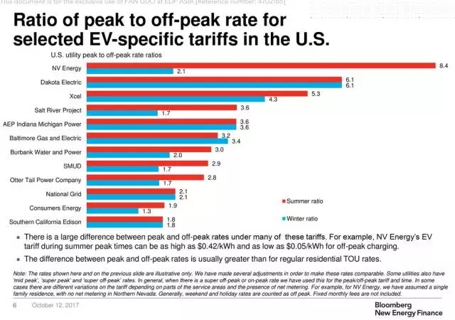 (美國(guó)部分針對(duì)電動(dòng)車(chē)的峰谷電價(jià)比:峰谷電價(jià)差最大可達(dá)8.4倍)