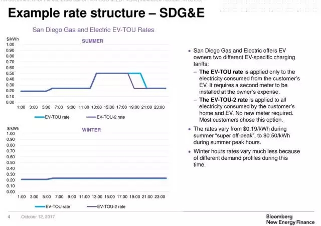 例如美國(guó)SDG&E電廠就同時(shí)提供以上兩種方案,兩種方案的區(qū)別在于峰谷時(shí)間段。據(jù)悉,大多數(shù)家庭會(huì)選擇適用于整個(gè)家庭的方案,只針對(duì)電動(dòng)汽車(chē)充電的方案需要用戶(hù)自付費(fèi)另外安裝電表,且峰時(shí)時(shí)段更長(zhǎng)。
