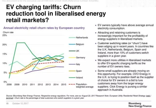 更重要的是,電動(dòng)汽車(chē)家庭每年的用電量普遍更高,在自由的電力市場(chǎng)中,電廠更要想辦法留住這些客戶(hù)。在英國(guó)、荷蘭、比利時(shí)、西班牙和愛(ài)爾蘭等國(guó)家,每年更換電力供應(yīng)商的用戶(hù)比例超過(guò)了10%。OVO Energy已經(jīng)在一項(xiàng)競(jìng)標(biāo)中將自身定位為電動(dòng)汽車(chē)用戶(hù)的首選電力供應(yīng)商,雄心勃勃準(zhǔn)備干掉那些大型能源企業(yè)。