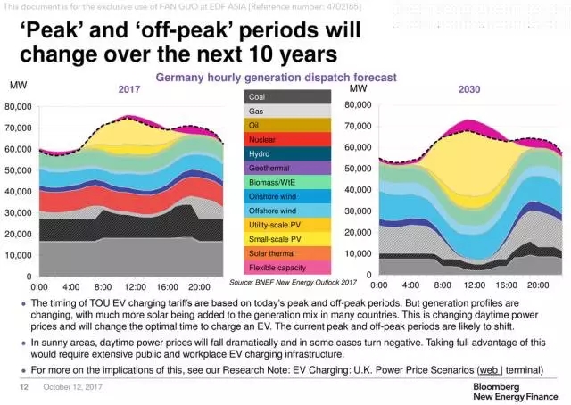 4、隨著光伏發(fā)電成本的下降,尤其小型分布式發(fā)電的滲透,目前的大多數(shù)分時(shí)電價(jià)的峰時(shí)時(shí)段將發(fā)生改變。特別是陽(yáng)光充足的地方,谷時(shí)時(shí)段會(huì)轉(zhuǎn)移到中午,也就意味著需要建設(shè)更多的公共充電設(shè)施或公司專(zhuān)用充電設(shè)備來(lái)充分利用該充電時(shí)段。