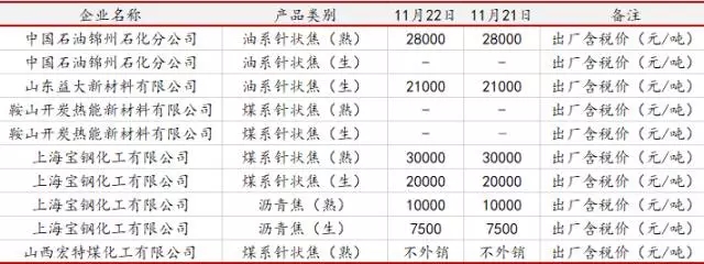 11月22日針狀焦主流成交參考價(jià)格(元/噸)
