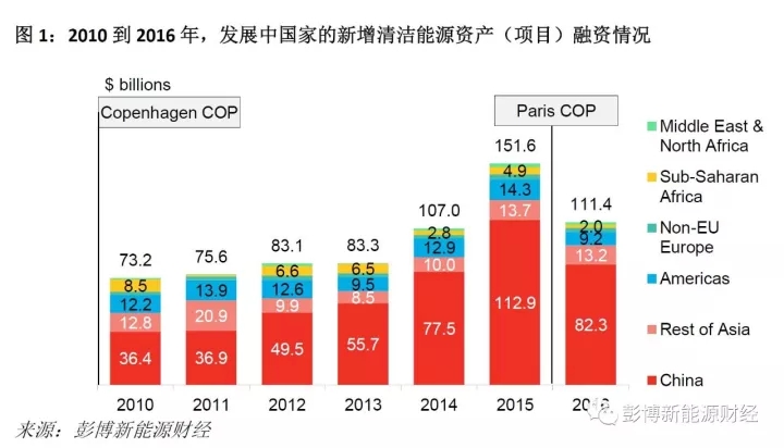 “這些數(shù)字反映了在解決氣候變化問題和支持清潔能源發(fā)展方面,各國的承諾和實(shí)際行動(dòng)之間仍存在差距。”彭博新能源財(cái)經(jīng)的分析師Ethan Zindler表示,“對(duì)比8年前通過的哥本哈根協(xié)議,富裕國家的投資增速低于預(yù)期。同時(shí)許多欠發(fā)達(dá)國家也并未制定相關(guān)減排政策架構(gòu),不利于提高投資者的信心、吸引清潔能源投資。”
