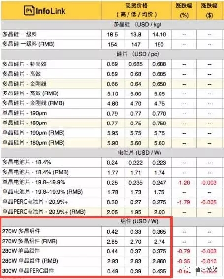 1)多晶硅的平均價(jià)格為2.71元/W;