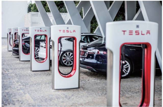因此,特斯拉推出了超級充電樁,這是一種高質(zhì)量途中充電裝置解決方案,同時要設(shè)立公共充電站,配備一整排的超級充電樁(圖 12),就像加油站的一排油泵。車主選配的車內(nèi)充電系統(tǒng)不同,充電時長也會不同。一般的車庫充電器需要花費 5 h 或10 h 才能對 Model S 進行完全充電,而燃油汽車僅需 5 min 便能加好油。