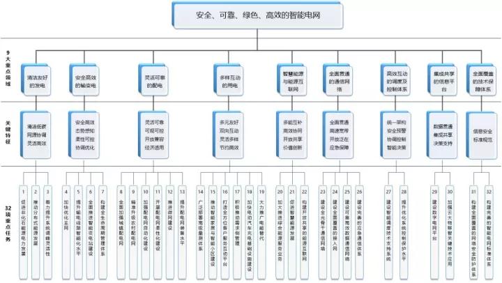按照“五個(gè)環(huán)節(jié)+四個(gè)支撐體系”的架構(gòu)體系,陳允鵬全面梳理了現(xiàn)階段應(yīng)完成的9大重點(diǎn)領(lǐng)域的32項(xiàng)重點(diǎn)建設(shè)任務(wù),以促進(jìn)智能電網(wǎng)的全方位發(fā)展。全面支撐電網(wǎng)安全、可靠、綠色、高效的發(fā)展目標(biāo)。各領(lǐng)域及其關(guān)鍵特征、核心作用和重點(diǎn)任務(wù)如下:
