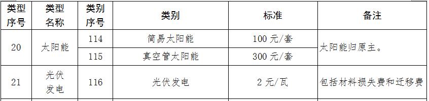 《批復》中明確指出,對于光伏發(fā)電給予2元/瓦的補償標準,其中包括包括材料損失費和遷移費。