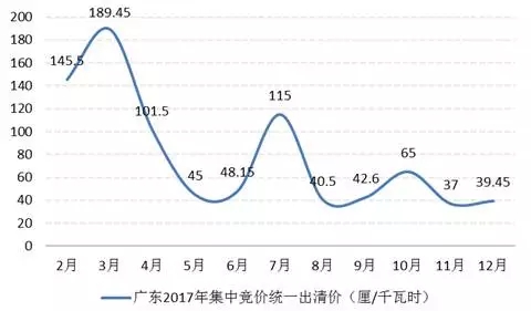 圖表七:廣東2017年集中競價成交價格不斷收窄