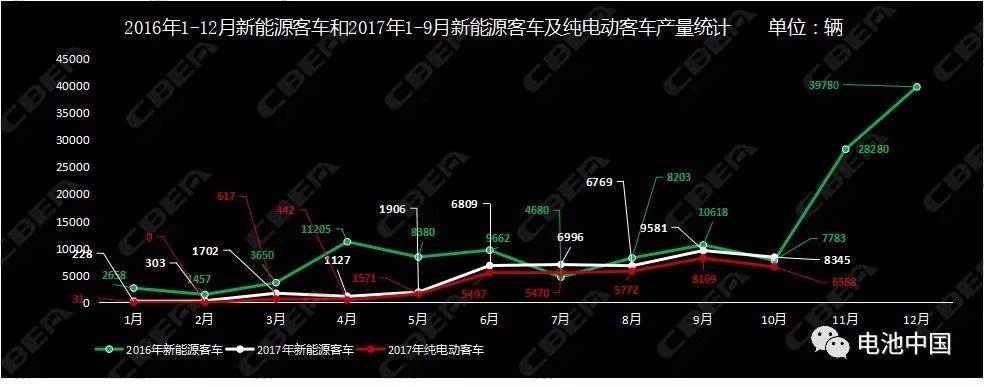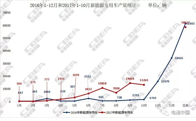 中國化學(xué)與物理電源行業(yè)協(xié)會動力電池應(yīng)用分會研究部在《2017年中國新能源汽車動力電池發(fā)展現(xiàn)狀及未來趨勢展望》報告中,對2016年新能源客車和新能源專用車產(chǎn)量數(shù)據(jù)做了細(xì)致分析,2016年年底,新能源汽車補貼政策的調(diào)整對新能源客車和專用車的市場影響較大。見下圖: