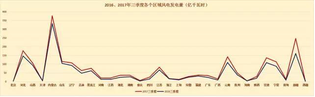 (圖:2016-2017年三季度各區(qū)域風(fēng)電發(fā)電量)