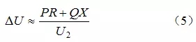 可見(jiàn),形成電壓偏差的電壓損失是由線路輸送功率(包括有功功率P和無(wú)功功率Q)和線路阻抗參數(shù)(電阻R和電抗X)共同決定的。對(duì)于110kV及以上電壓等級(jí)的輸電線,由于X>> R,無(wú)功功率Q對(duì)ΔU的影響遠(yuǎn)遠(yuǎn)大于有功功率P的影響。當(dāng)線路的阻抗參數(shù)不滿足X>> R時(shí),含有新能源的分布式電源的低壓配電網(wǎng)中,有功功率P對(duì)電壓損失ΔU的影響已經(jīng)不能忽略,有功功率P和無(wú)功功率Q的傳輸共同造成的線路上的電壓損失,形成電壓偏差。