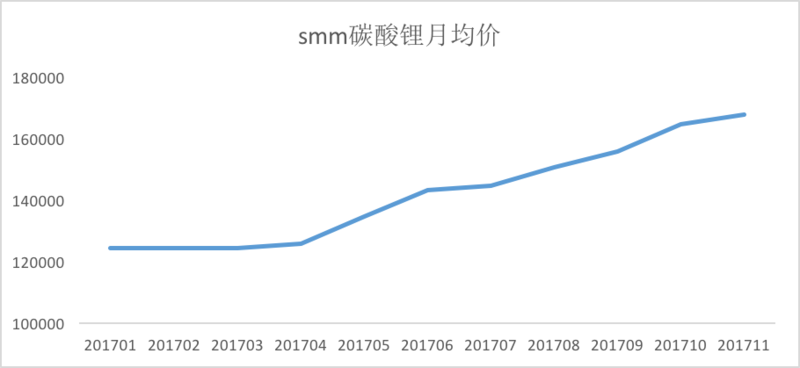 根據(jù)SMM的測算,鋰原料端并不短缺。碳酸鋰今年的漲幅,除了龍頭企業(yè)突發(fā)性檢修外,更多的原因還是下游三元材料廠的擴(kuò)產(chǎn)速度超過了國內(nèi)的碳酸鋰供給增速。明年下半年到2019年會有相當(dāng)一部分的鋰鹽冶煉廠達(dá)產(chǎn)及投產(chǎn),預(yù)計今年鋰鹽產(chǎn)能短缺的狀況可以得到一定程度環(huán)節(jié),過剩的原料會在明年下半年以后逐步釋放增加市場供給。SMM預(yù)計明年碳酸鋰價格明年會維持在今年均價波動。