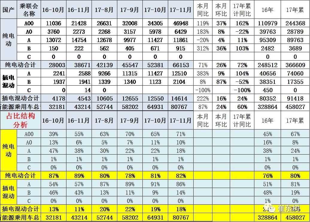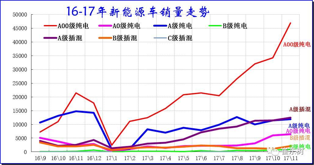 目前的純電動A00級車成為車市的絕對主力車型,增長表現(xiàn)突出,而16年A級電動車表現(xiàn)也較強,雖然17年9月調(diào)整,但10-11月仍較快穩(wěn)定并恢復(fù)。