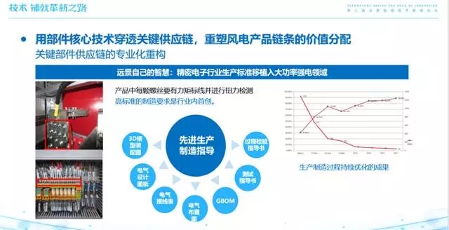 實際上,2010年遠景就意識到,僅僅聚焦于系統(tǒng)集成和軟件控制技術(shù)以及外購知名品牌的關(guān)鍵部件,盡管可以始終保持風(fēng)機產(chǎn)品的質(zhì)量可靠性,但難以滿足持續(xù)推低度電成本的行業(yè)需求,唯有可持續(xù)的風(fēng)電發(fā)展方式才可破局,這也是遠景為什么執(zhí)意要打開關(guān)鍵部件黑匣子的用意。此后的五年多時間,遠景先后打開了變頻器、變槳、葉片、發(fā)電機和齒輪箱等關(guān)鍵部件的黑匣子。這意味著,部件核心技術(shù)穿透了風(fēng)電供應(yīng)鏈,被改變甚至重塑的不只是產(chǎn)業(yè)鏈,風(fēng)電整機性能和可靠性也會躍上新臺階。