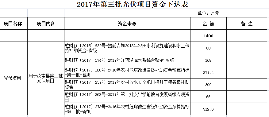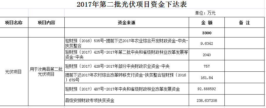 2017年第二批光伏項(xiàng)目資金下達(dá)表