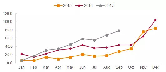 · 10月-12月:進(jìn)入四季度后,雖然新能源汽車出貨量依然持續(xù)上升,但動(dòng)力電池開始進(jìn)入淡季。由于前期對(duì)今年動(dòng)力電池需求量估計(jì)過高,行業(yè)前期整體庫(kù)存偏高,在全年電池需求量低于預(yù)期(主要原因是客車大幅下滑)的情況下,電池企業(yè)在年底開始進(jìn)入去庫(kù)存階段。再加上市場(chǎng)開心擔(dān)心2018年新能源汽車補(bǔ)貼政策的調(diào)整,導(dǎo)致新能源汽車板塊又開始新一輪的回調(diào),行業(yè)再次進(jìn)入輪回。