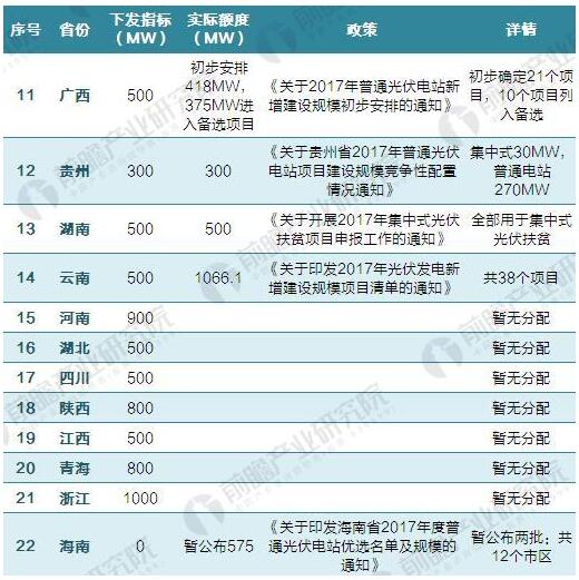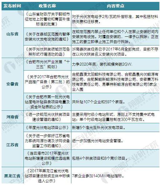 圖表5:2017年11月我國主要省份發(fā)布的光伏發(fā)電政策匯總及解讀(三)