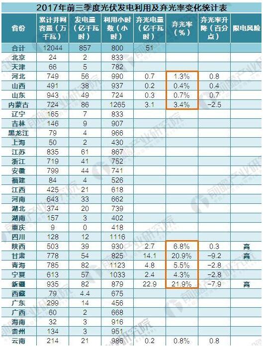 我國棄光現(xiàn)象主要集中在西北五省(區(qū))和東部地區(qū)。根據(jù)國家能源局發(fā)布的最新統(tǒng)計數(shù)據(jù)顯示,2017年前三季度,我國光伏發(fā)電的利用水平有所提升。