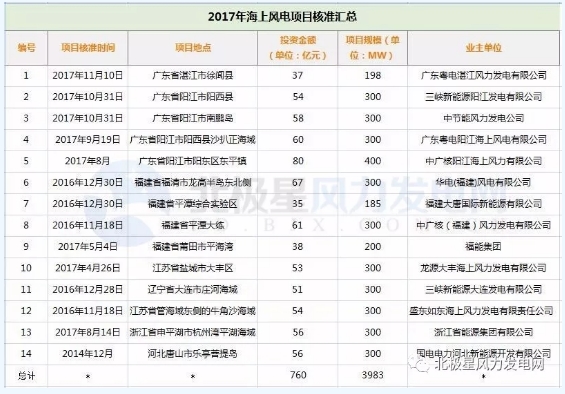 中國儲能網(wǎng)訊:2017年即將過去,回首這一年,風(fēng)電行業(yè)有許多可圈可點值得記念的部分。北極星風(fēng)力發(fā)電網(wǎng)對2017年風(fēng)電行業(yè)的方方面面做了獨家梳理,今天發(fā)布的是——《2017年海上風(fēng)電項目核準(zhǔn)匯總》。