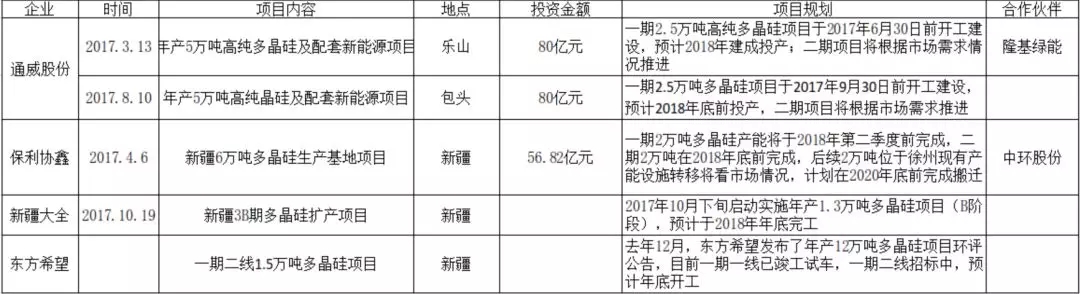 2017年多晶硅擴(kuò)產(chǎn)計(jì)劃: