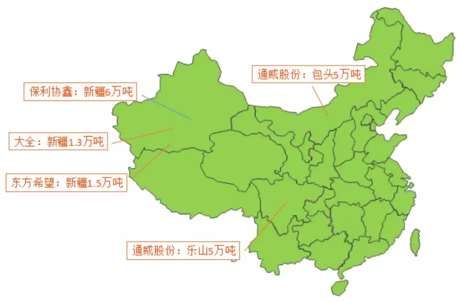 2017年多晶硅擴(kuò)產(chǎn)地區(qū)分布: