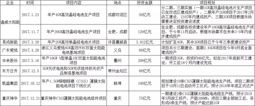 2017年電池片擴(kuò)產(chǎn)計(jì)劃: