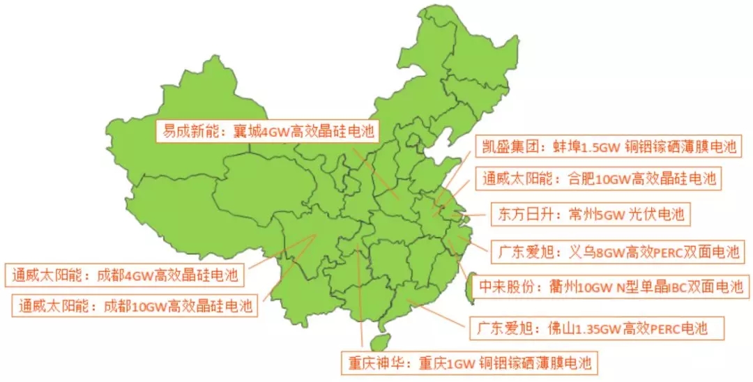 2017年電池片擴(kuò)產(chǎn)地區(qū)分布: