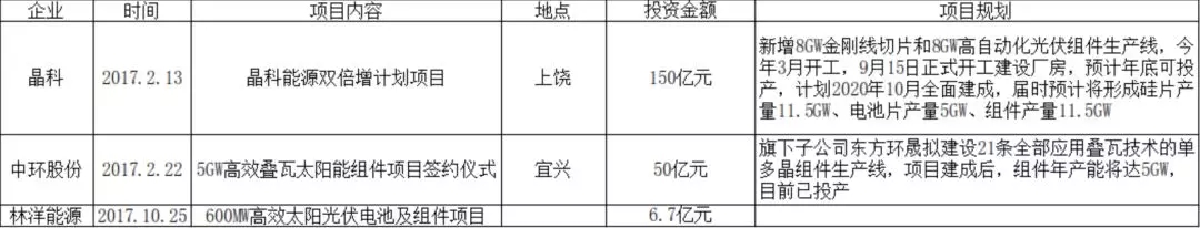 2017年光伏組件擴(kuò)產(chǎn)計(jì)劃: