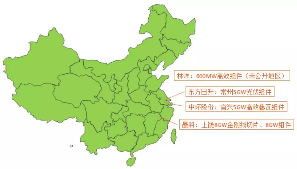 2017年光伏組件擴(kuò)產(chǎn)地區(qū)分布: