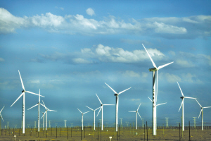 電力交易的開展,促進了華北、西北電能在華中消納。圖為位于甘肅嘉峪關(guān)戈壁灘上的一處風電場。孫耀賢 攝