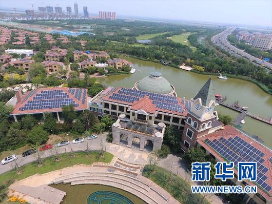 太陽能應用是團泊湖能源新城建設規(guī)劃的重要組成部分,團泊示范鎮(zhèn)的建設堅持低碳技術先行,譜寫了可持續(xù)發(fā)展新篇章。從設計上將太陽能、地熱、地源熱泵等多種能源技術相結(jié)合,實現(xiàn)能源互補利用,為示范鎮(zhèn)建設提供了先進的科技保障。在新城的整體規(guī)劃思路的指引下,天津團泊湖溫泉酒店成為了該城區(qū)的分布式光伏電站示范項目基地。