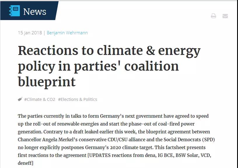 值得期待的是,即將開始制定聯(lián)盟條約的談判,其間會(huì)對德國實(shí)現(xiàn)氣候目標(biāo)的路線圖進(jìn)行更具體的闡述。另外,也會(huì)建立煤炭淘汰委員會(huì),樹立更雄心勃勃的可再生能源目標(biāo)。