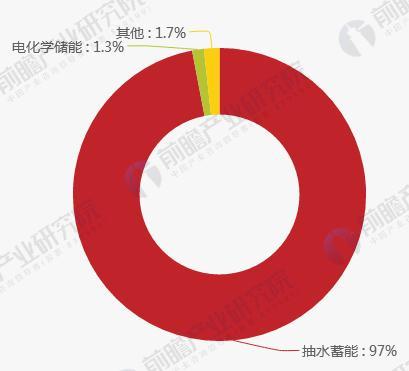 根據(jù)前瞻產業(yè)研究院發(fā)布的數(shù)據(jù),截至2017年第三季度,全球已投運儲能項目累計裝機規(guī)模為169.2吉瓦,其中電化學儲能項目累計裝機規(guī)模達2244.4兆瓦,占比1.3%,排名第三,所占比重相比去年增長15%。抽水蓄能仍高居榜首,占比達97%。