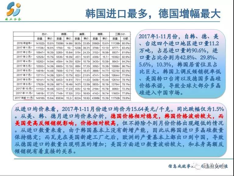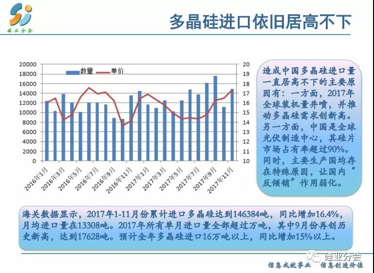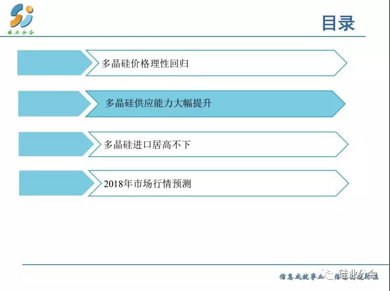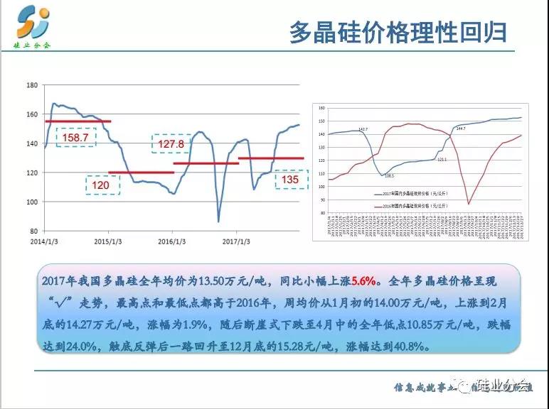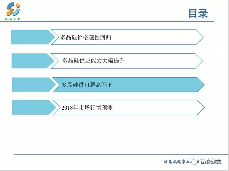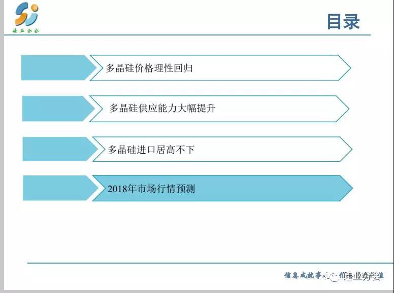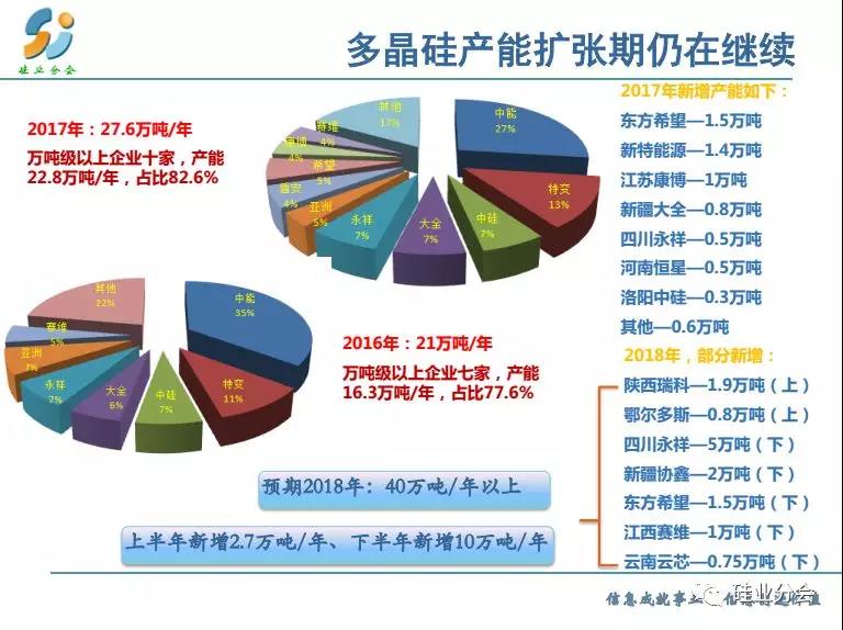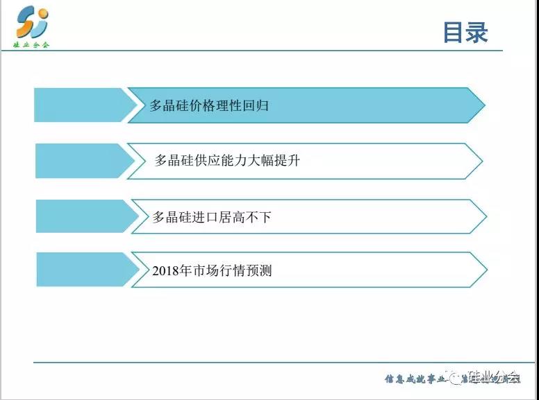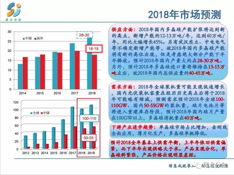 預測2018全年基本上供需平衡,特別是上半年,而下半年出現(xiàn)供大于求的失衡狀態(tài)。但是產(chǎn)品呈現(xiàn)分化,單晶硅料緊張,產(chǎn)品價格出現(xiàn)明顯差距。
