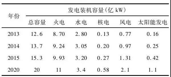 我國的電源結(jié)構(gòu)主要以火電為主,如下表所示。2015年全國發(fā)電裝機總?cè)萘繛?5.3億kW,比上年增長了約12%,增速幅度放緩。與此同時,電源結(jié)構(gòu)也在逐漸調(diào)整。2014年,火電在能源結(jié)構(gòu)組成中仍占約70%的比例,風(fēng)能及太陽能等新能源只占不到10%;2015年,火力發(fā)電裝機容量則約占當年總?cè)萘康?5%,穩(wěn)中略降,新能源的比例則提升為13%,增幅明顯?!兑?guī)劃》明確表明,按照非化石能源消費比重達到15%的要求,到2020年,非化石能源發(fā)電裝機達到約7.7億kW,占比提高到39%;火電裝機力爭控制在11億kW以內(nèi),占比降至約55%。