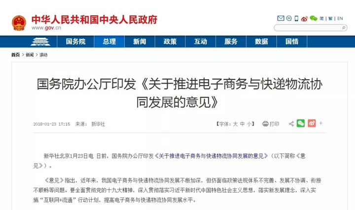 2018年1月23日,國務院頒布《國務院辦公廳關于推進電子商務與快遞物流協(xié)同發(fā)展的意見》,意見指出,鼓勵快遞物流領域加快推廣使用新能源汽車,逐步提高新能源汽車使用比例。指導各地完善城市配送車輛通行管理政策,合理確定通行區(qū)域和時段,對快遞服務車輛等城市配送車輛給予通行便利。