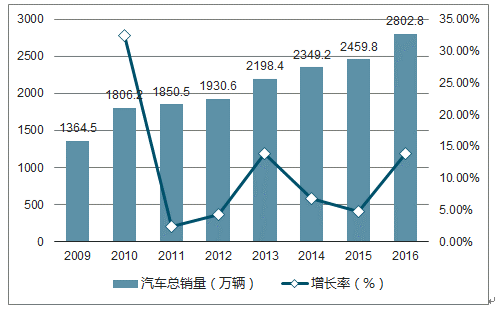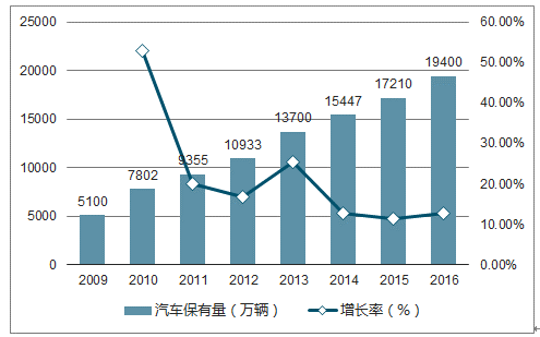 汽車起動(dòng)電池下游市場(chǎng)分為一級(jí)市場(chǎng)(配套市場(chǎng))與二級(jí)市場(chǎng)(維護(hù)市場(chǎng)),在汽車產(chǎn)銷量和保有量持續(xù)增長(zhǎng)的背景下, 汽車起動(dòng)電池市場(chǎng)規(guī)模呈現(xiàn)快速增長(zhǎng)態(tài)勢(shì)。一級(jí)市場(chǎng)是為汽車整車生產(chǎn)廠家提供配套供貨,每輛新車一般配備一只電池。二級(jí)市場(chǎng)是指存量車客戶在車輛維修保養(yǎng)過程中通過汽車零配件經(jīng)銷商、汽車 4S 店、蓄電池經(jīng)營(yíng)部和汽車修理店等經(jīng)銷商購(gòu)買蓄電池。汽車起動(dòng)電池屬于汽車零部件中的消耗品,平均壽命約 2 年,因此汽車起動(dòng)電池市場(chǎng)需求數(shù)量為新車銷量與汽車保有量一半之和。我國(guó)汽車銷量從2010年的1,806.2萬(wàn)輛增長(zhǎng)至2016年的2,802.8萬(wàn)輛,年均增長(zhǎng)率為7.60%;我國(guó)汽車保有量從 2010 年 7,802 萬(wàn)輛增長(zhǎng)至 2016 年的 19,400 萬(wàn)輛,年均增長(zhǎng)率達(dá) 16.39%。持續(xù)增長(zhǎng)的汽車銷和存量為汽車起動(dòng)電池的發(fā)展提供了良好的市場(chǎng)環(huán)境。