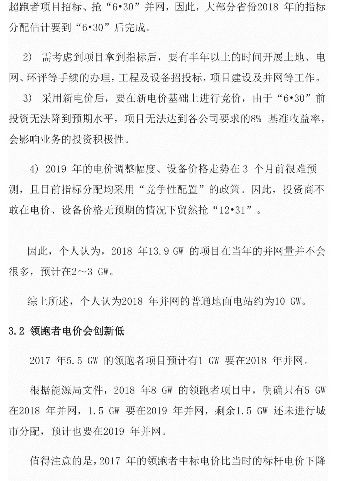 電價(jià)調(diào)整對2018 年光伏市場影響的探討(下)