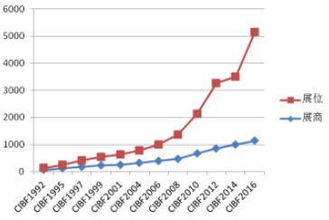 圖2:CIBF1992-2016的展商數(shù)據(jù)