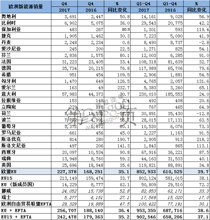 中國儲能網(wǎng)訊:據(jù)歐洲汽車制造協(xié)會(ACEA)公布的數(shù)據(jù)顯示,2017年第四季度,歐盟地區(qū)新能源汽車的需求量繼續(xù)保持增長,同比增幅達到35.1%,總計售出227,378輛,在整個乘用車銷量當中的占比達到6.7%。