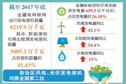 6日,記者從自治區(qū)發(fā)改委獲悉,截至去年底,全疆電網(wǎng)聯(lián)網(wǎng)運(yùn)行發(fā)電裝機(jī)容量8219.9萬千瓦,其中新能源和可再生能源發(fā)電裝機(jī)容量3405.2萬千瓦,占總裝機(jī)容量的41.43%。尤其是自治區(qū)風(fēng)電、光伏發(fā)電裝機(jī)均居全國第二位。