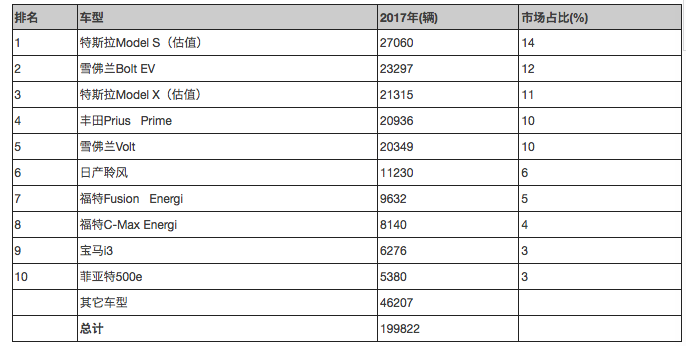 特斯拉Model S全年預(yù)估銷售27060輛,成為美國年度最暢銷車,Model X預(yù)估銷售21315輛,排名第三。而通用雪佛蘭Bolt EV則憑借23297輛的銷售記錄橫杠在兩款特斯拉車型之間,奪得亞軍,這款小型掀背車將是2018年競爭力最強的候選車型。