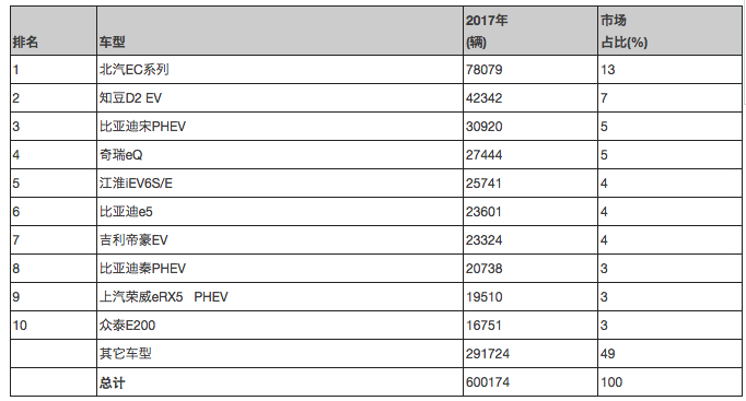 城市微型電動汽車在這一年成為主流,北汽EC系列榮獲中國2017年銷量冠軍車型,終結(jié)了比亞迪三冠王之路(秦PHEV于2014、15年獲得冠軍,唐PHEV于2016年獲得冠軍),EC系列2017共銷售78079輛,創(chuàng)造了新的歷史記錄。