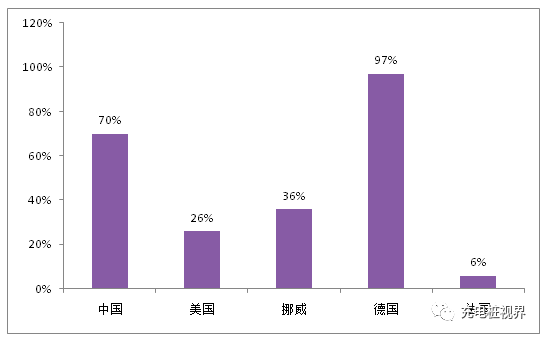 圖表 3 五國2017年新能源乘用車銷量同比增長率