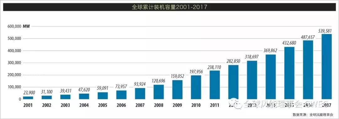 報告統(tǒng)計,全球市場2017年新增裝機52.57GW,累計裝機容量達到539.58GW。其中,歐洲、印度和海上風電裝機實現(xiàn)創(chuàng)紀錄突破。中國風電增速放緩,實現(xiàn)19.5GW裝機。