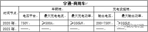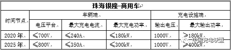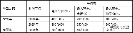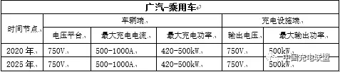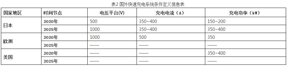 ~2020年,快速充電系統(tǒng)充電功率范圍:100kW~200kW,單個直流充電接口充電電流不超過250A,電壓范圍:400~800V。
