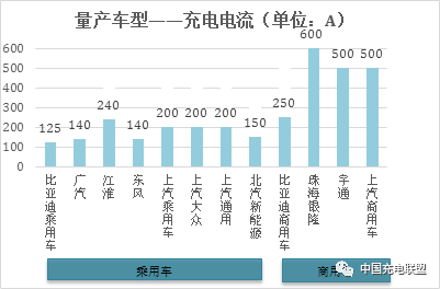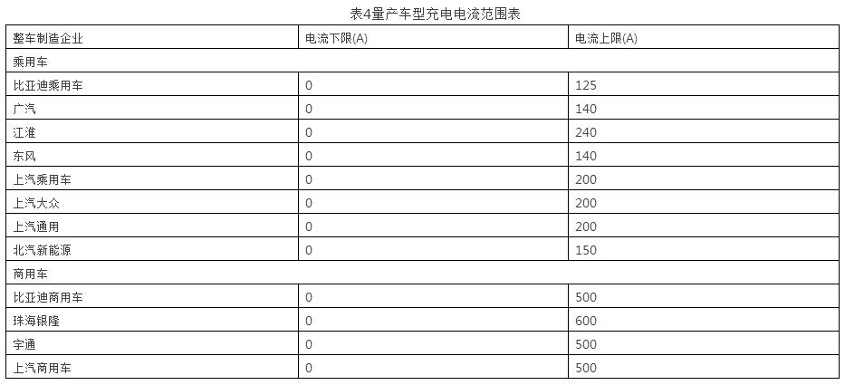 乘用車方面,充電電流普遍在0~200A之間,其中江淮量產(chǎn)乘用車充電電流最高可達(dá)到240A。